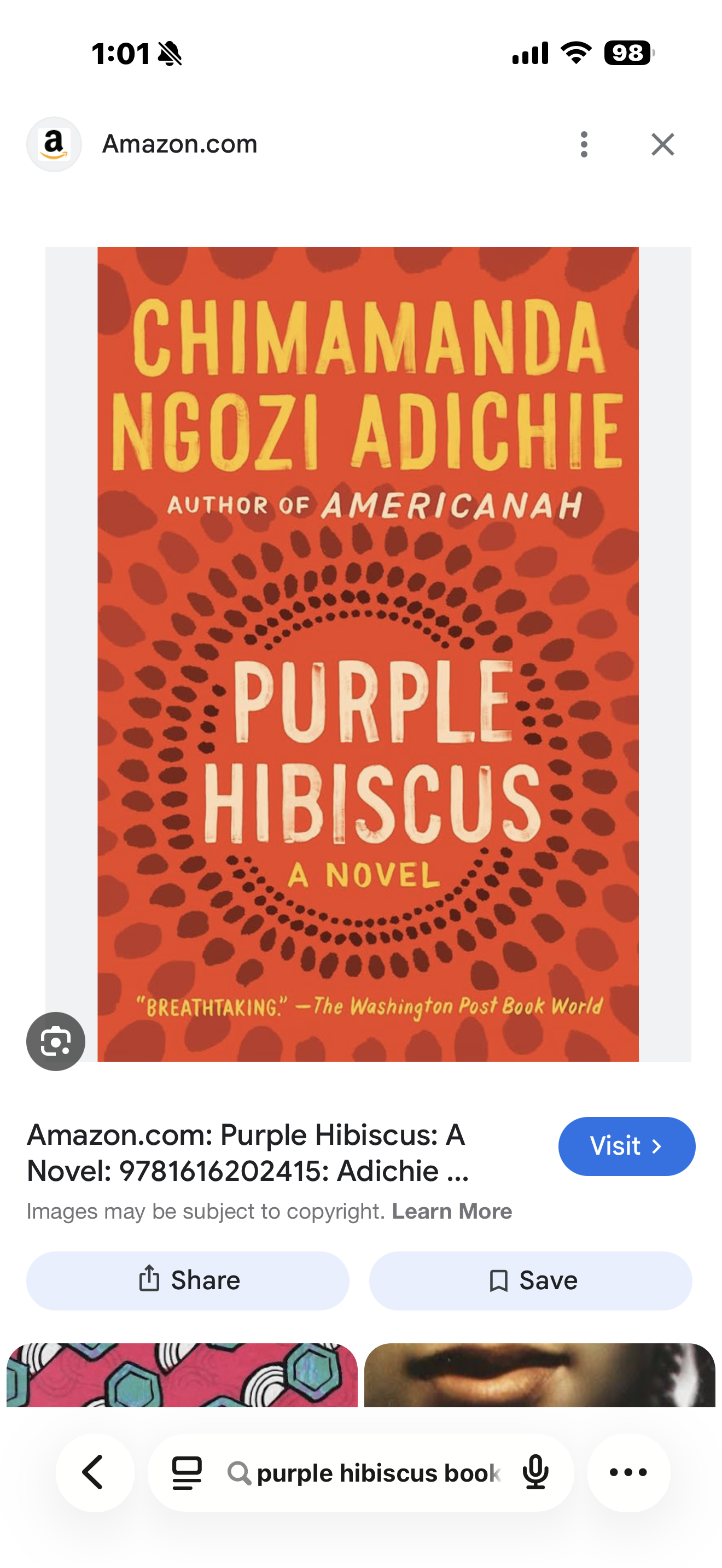 For AP Literature, we are currently reading “Purple Hibiscus” by Chimamanda Ngozi Adichie. I am enjoying this book so far as it is more of a modern read than many other books I have read for class. The plot is fascinating, and I am learning a lot about Nigerian culture.